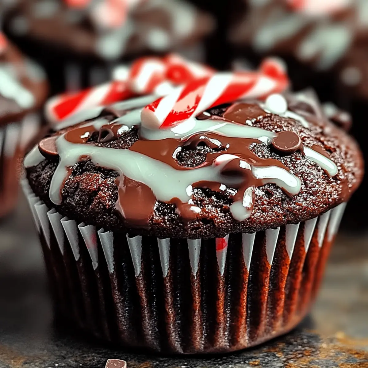 After the muffins have cooled slightly, transfer them to a wire rack. Drizzle the peppermint glaze generously over each muffin. For added flair and crunch, sprinkle crushed candy canes on top. This decadent decoration not only looks festive but provides a delightful contrast to the soft, moist muffins while enhancing the peppermint flavor experience.