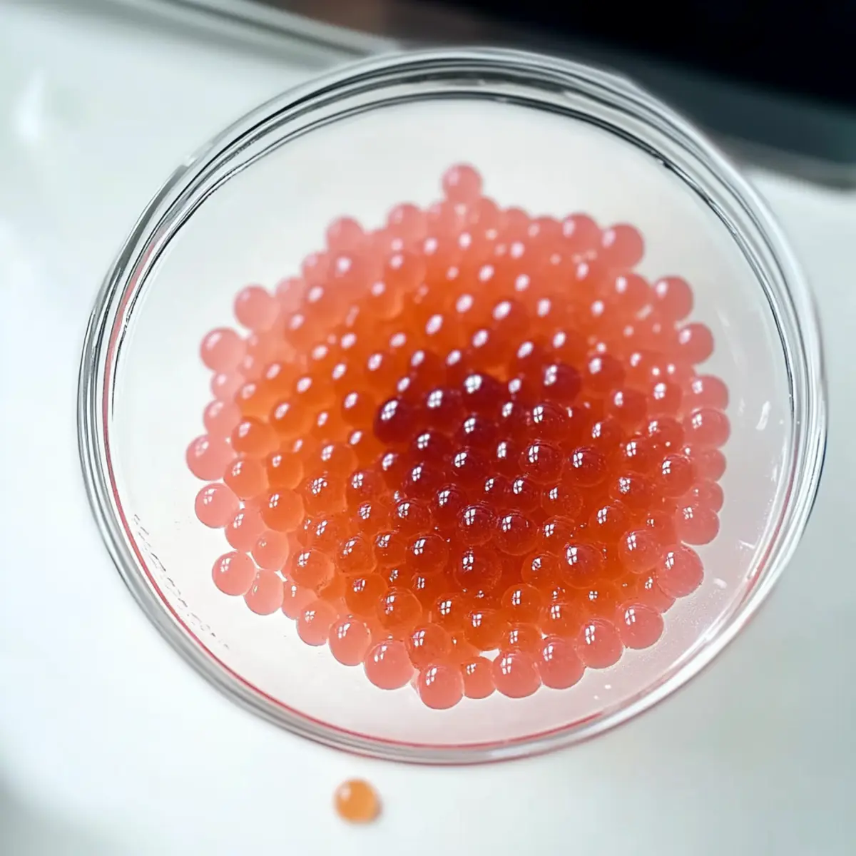 • Calcium Lactate – Critical for encapsulating the fruit essence into spherical form.