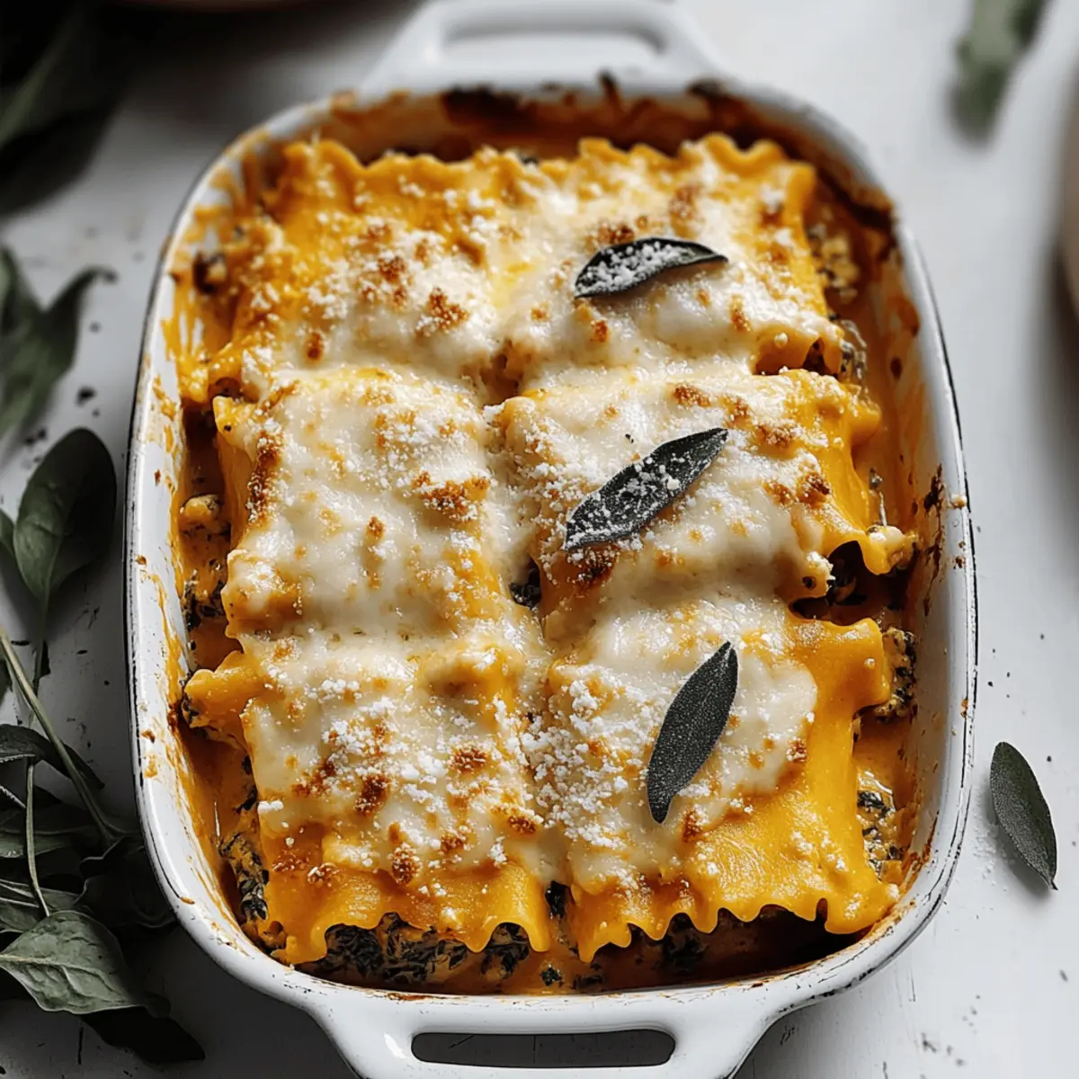 Preheat your oven to 350°F (175°C). Once the rollups are arranged in the baking dish, pour the remaining béchamel sauce evenly over the top, covering all the rollups. Bake in the preheated oven for 30 minutes until bubbly and golden. Allow the dish to stand for 10 minutes before serving, letting the flavors meld beautifully in these comforting Pumpkin Lasagna Rollups.