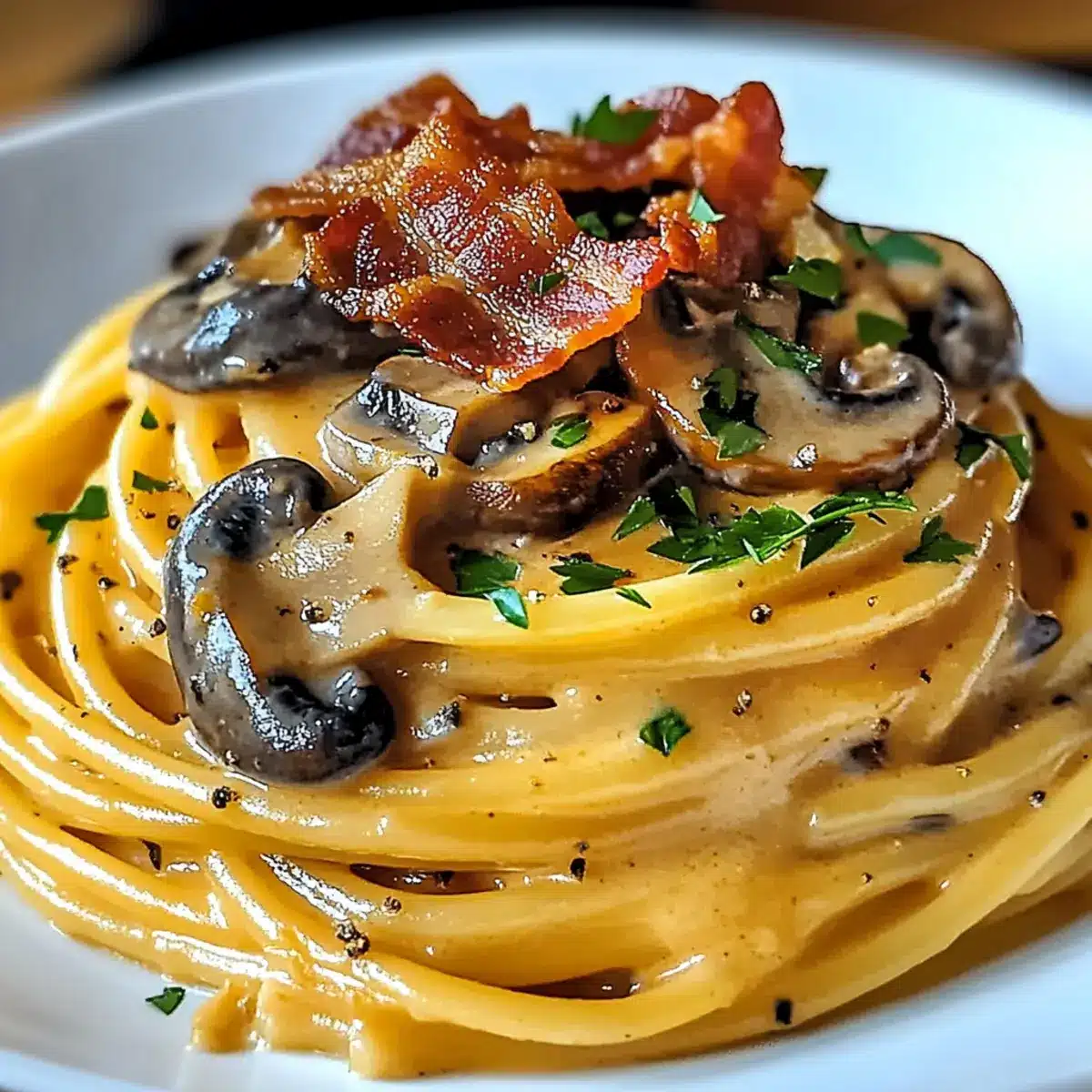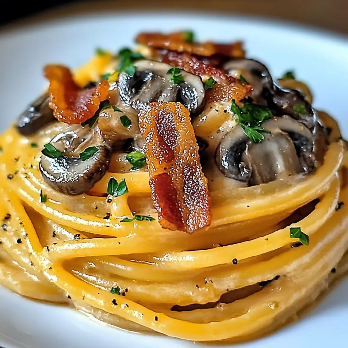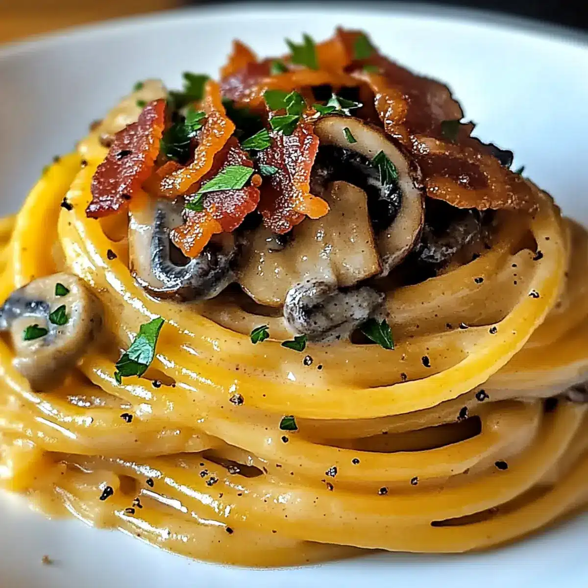 Creamy Pumpkin & Mushroom Spaghetti with Crispy Bacon Bliss