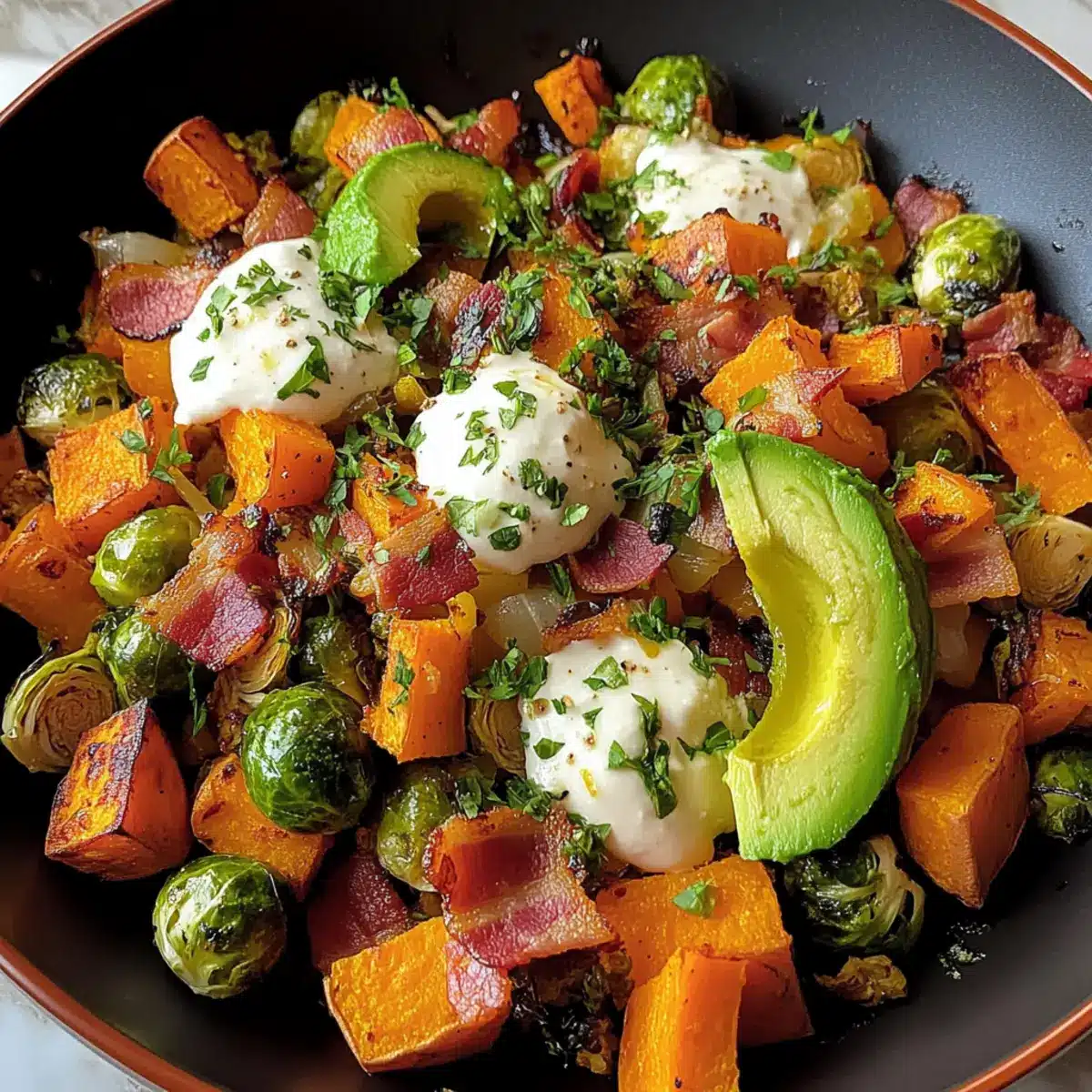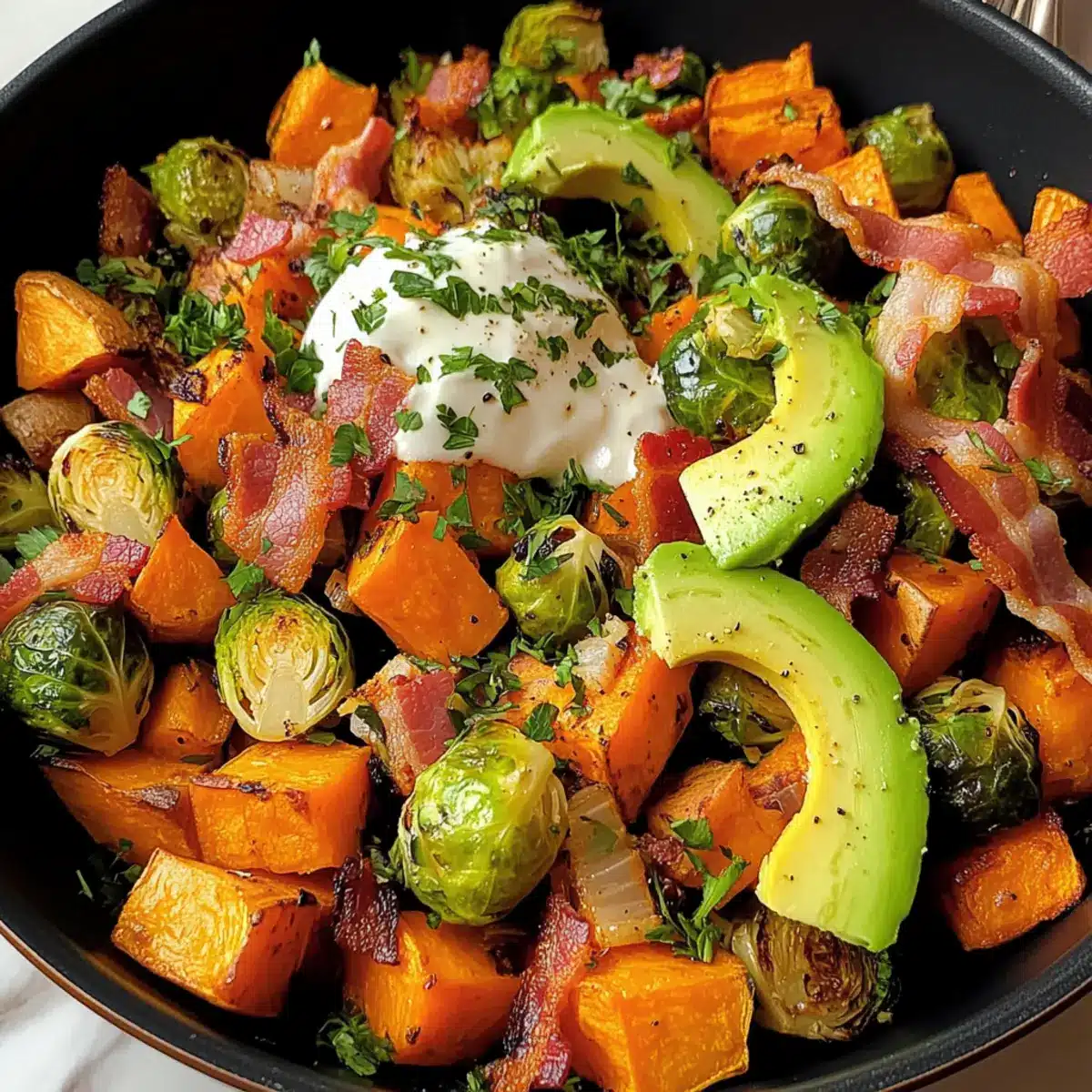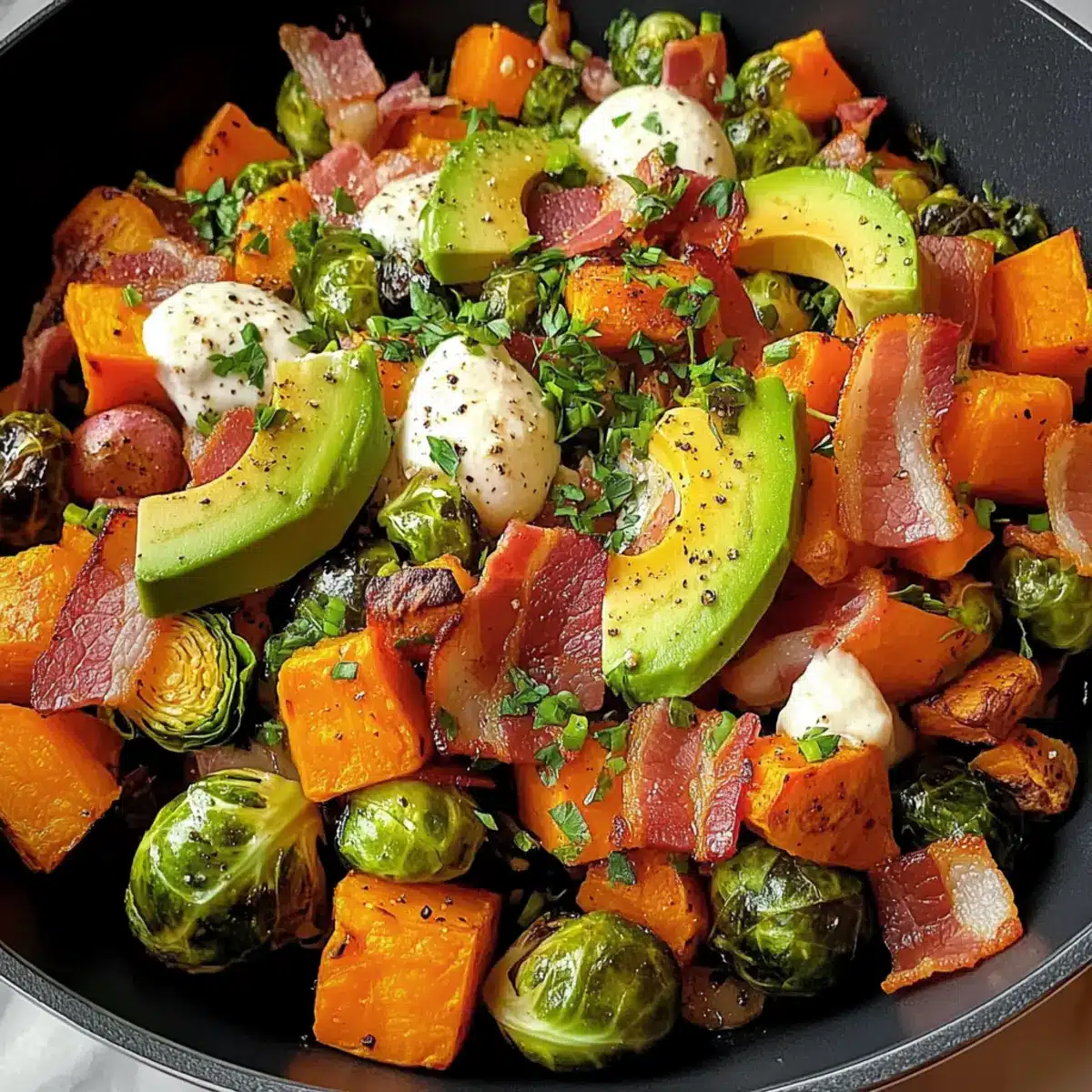 Colorful and Nutritious: The vibrant mix of sweet potatoes and Brussels sprouts not only looks beautiful but also packs a nutritional punch, making it a guilt-free indulgence.