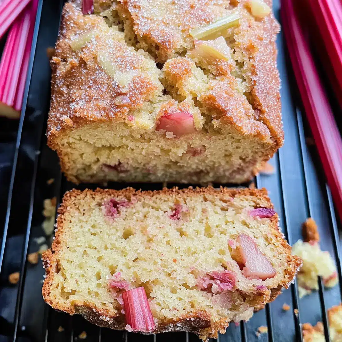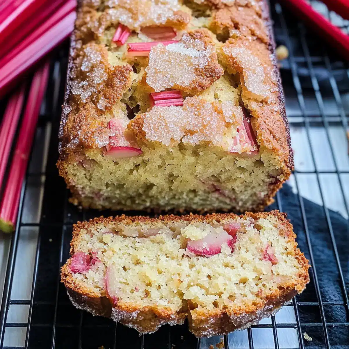 Irresistible flavor: This bread perfectly balances the sweet and tangy notes of rhubarb, enhanced by a warm touch of cinnamon.