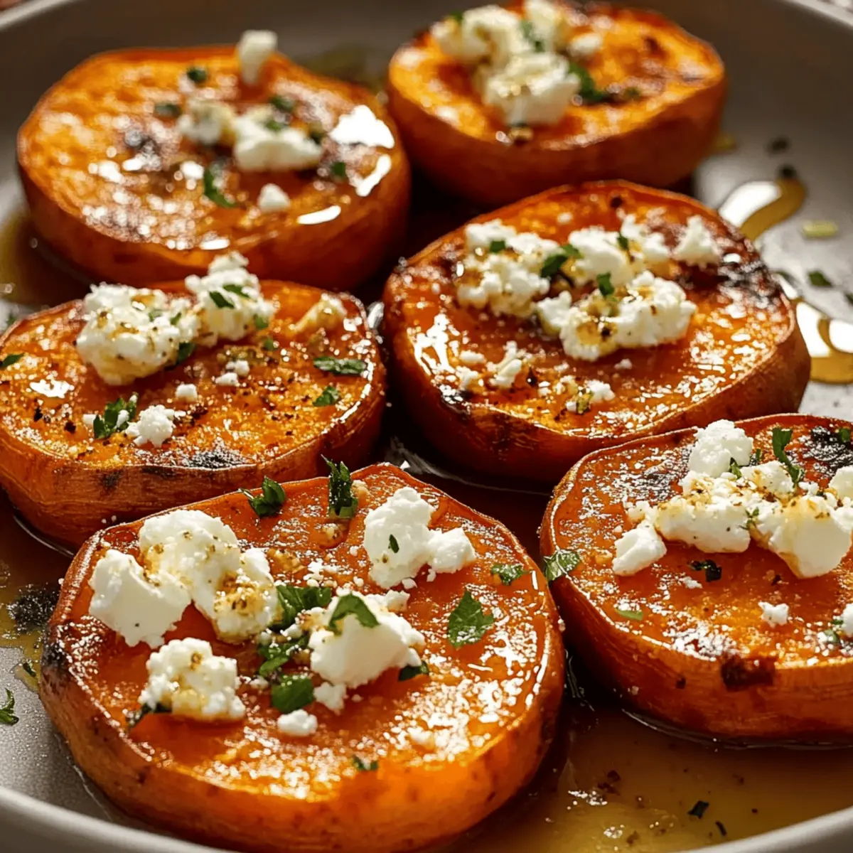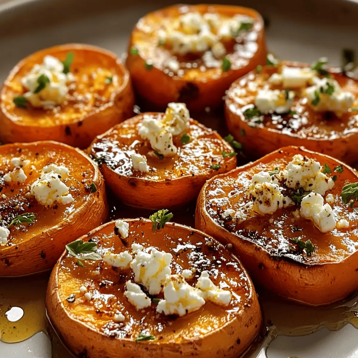 Sweet & Savory Roasted Sweet Potato Rounds with Honey & Feta