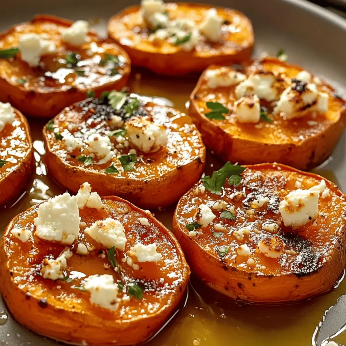 Transfer the warm sweet potato rounds to a serving platter. Crumble the feta cheese generously over the top, letting it melt slightly into the warm potatoes. The creamy texture of the feta paired with the sweet potatoes will be a match made in heaven!