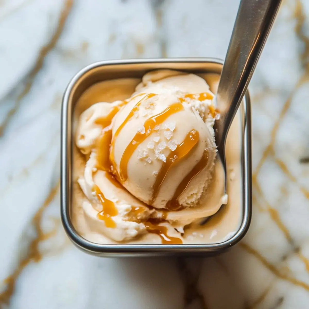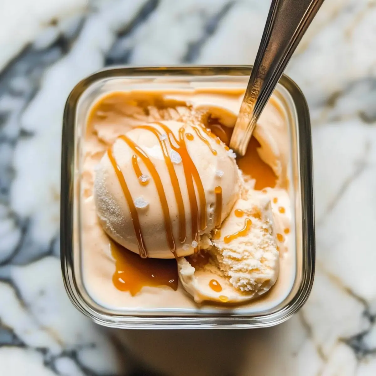 - Scoop into bowls or cones, drizzle with caramel sauce, and sprinkle with sea salt before serving.
