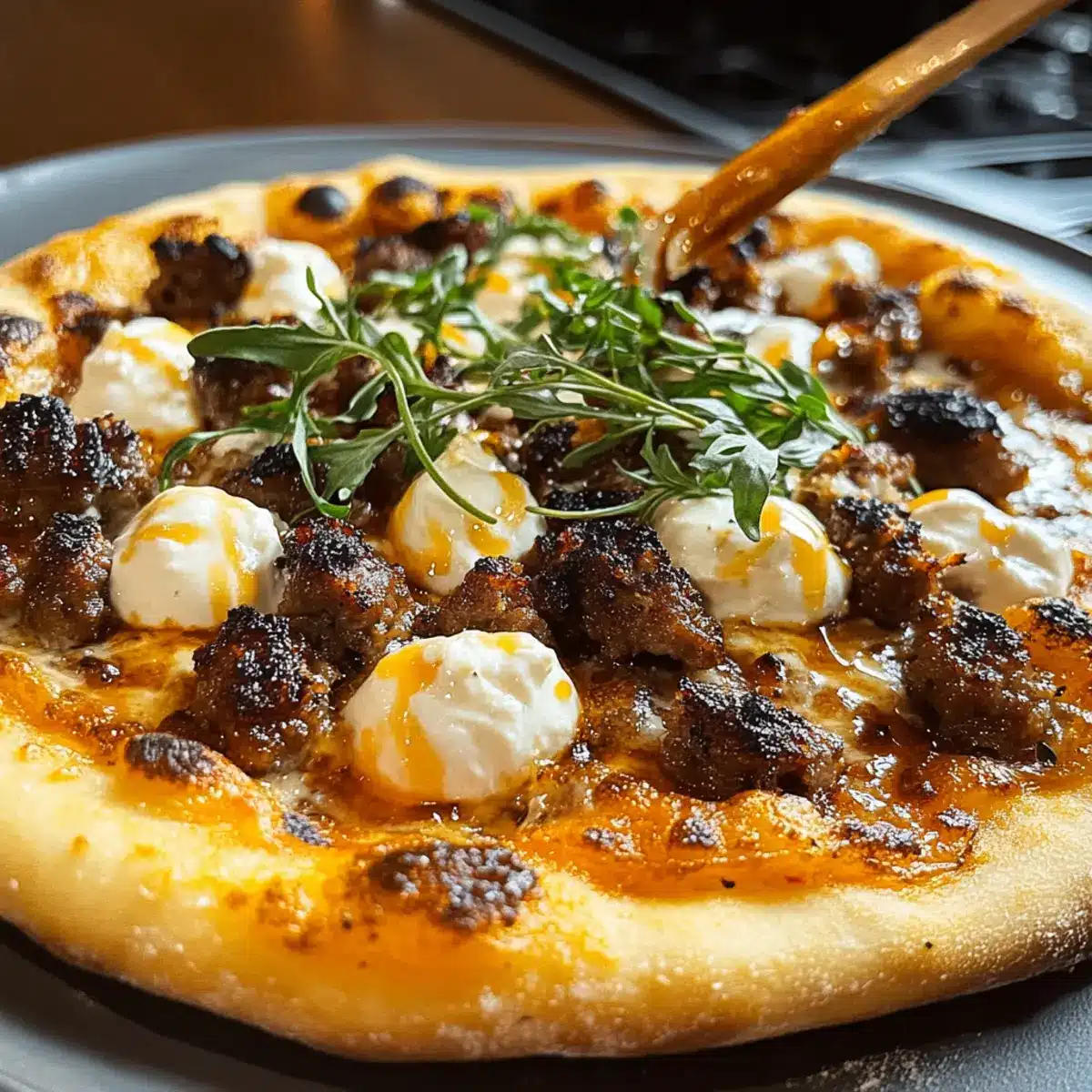 - Dollop Wisely: For the ricotta, dollop instead of spreading; this keeps its creamy texture intact and enhances each bite of the Sausage Ricotta Honey Hot Pizza.