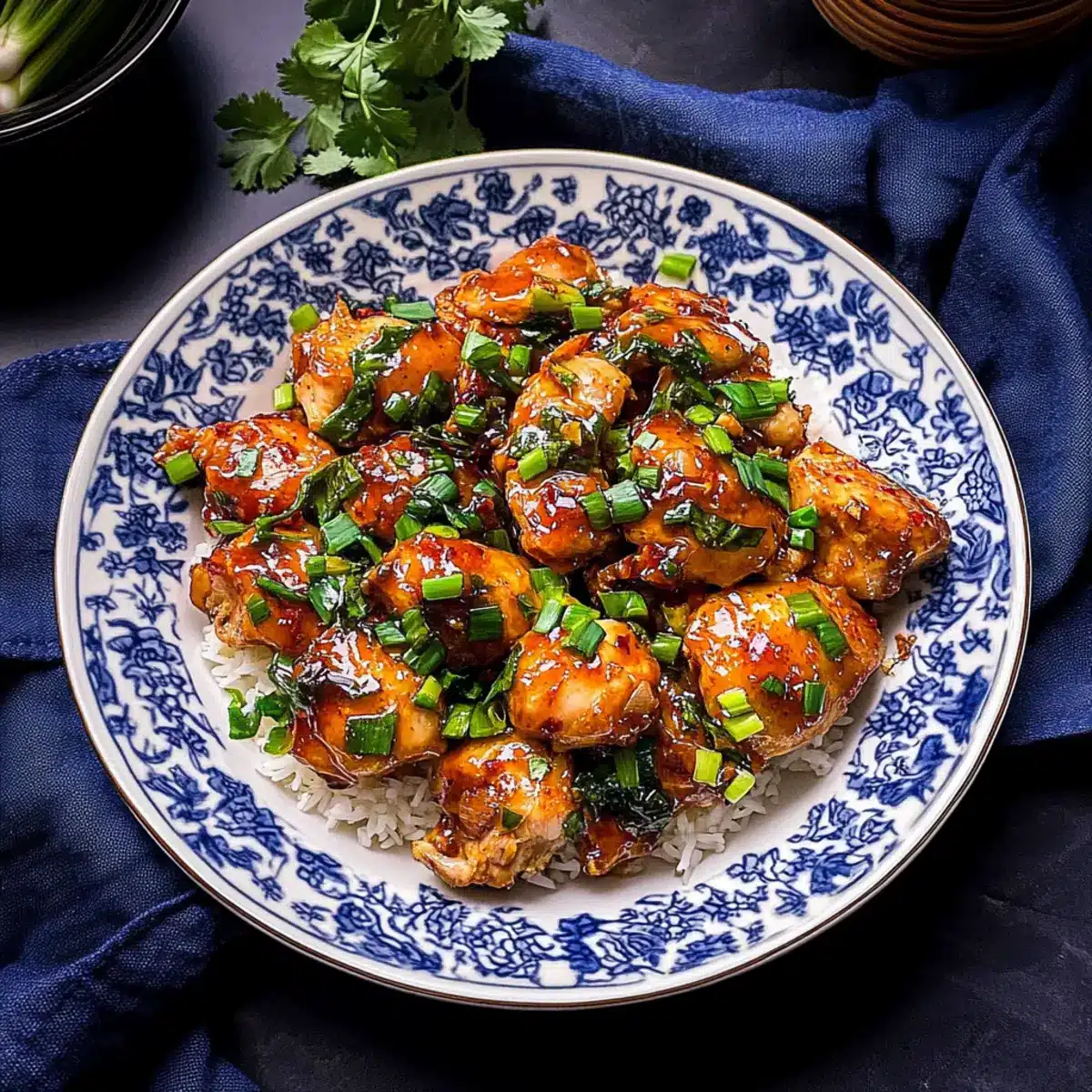 Flavor Explosion: The dish features savory chicken thighs and sweet scallions, melding classic Asian flavors into each bite—a treat for your taste buds!