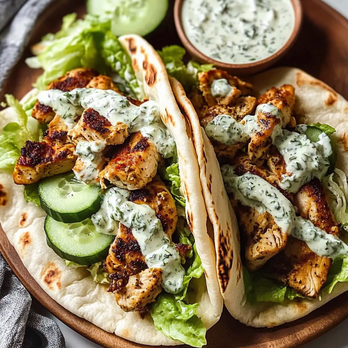 - Pita Bread – Pocket-style; perfect for filling with that succulent chicken! Alternative options include naan or tortillas for a fun twist.