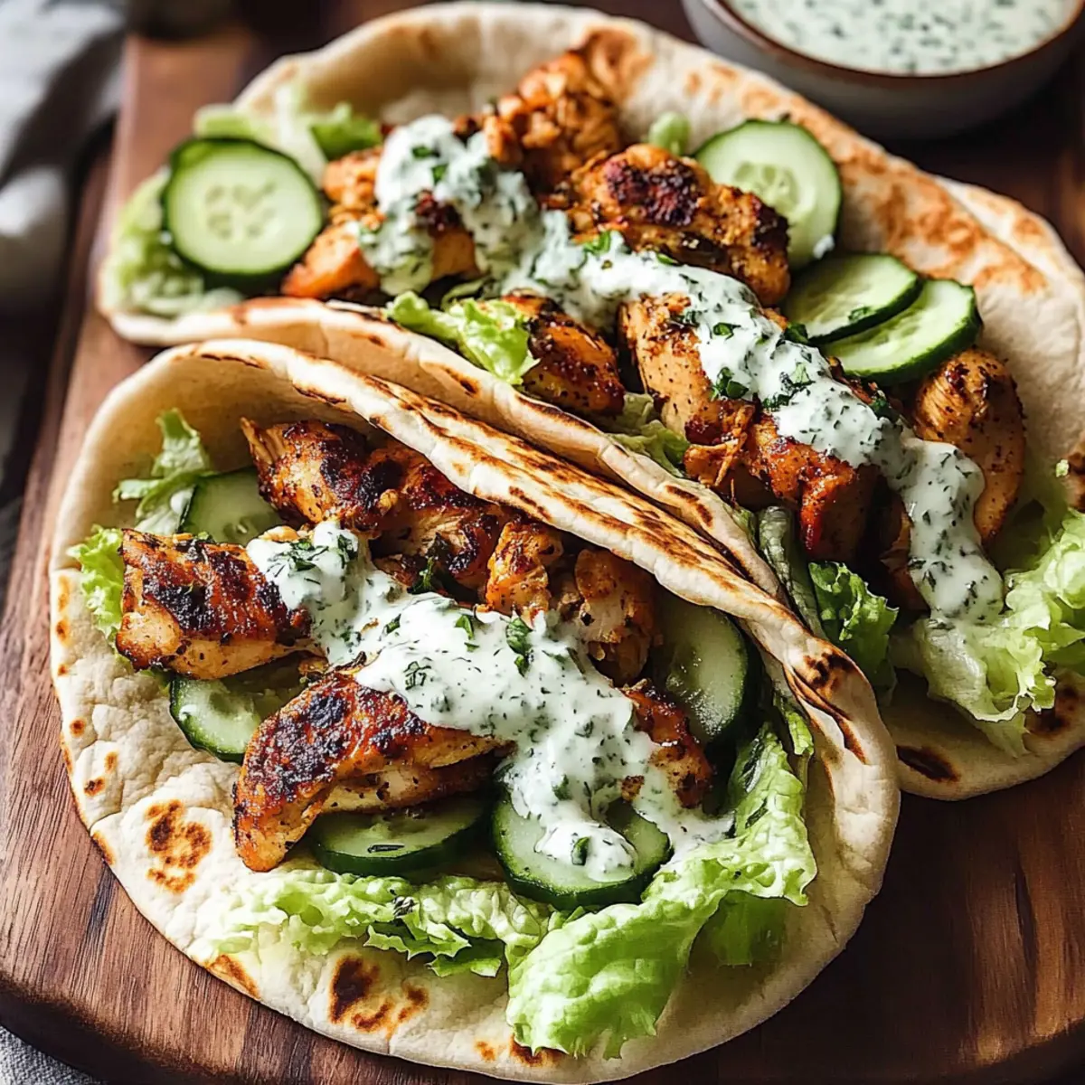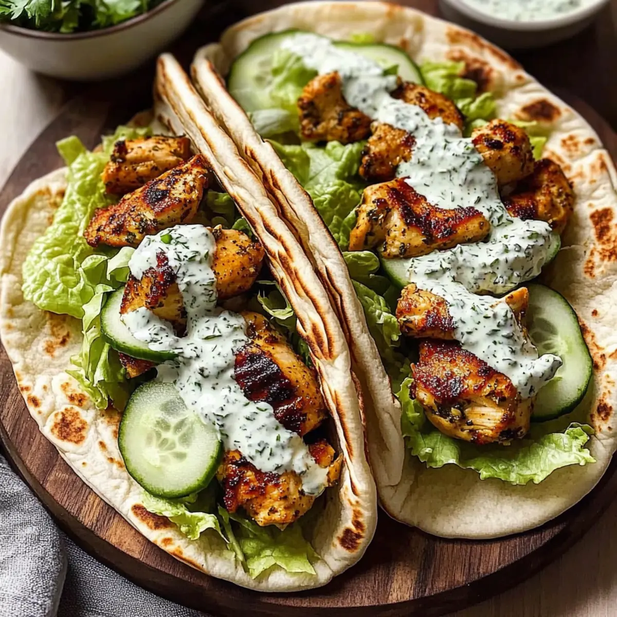 Mediterranean Hummus: Spread a layer of hummus in the pita before adding the chicken for an extra layer of flavor and creaminess.