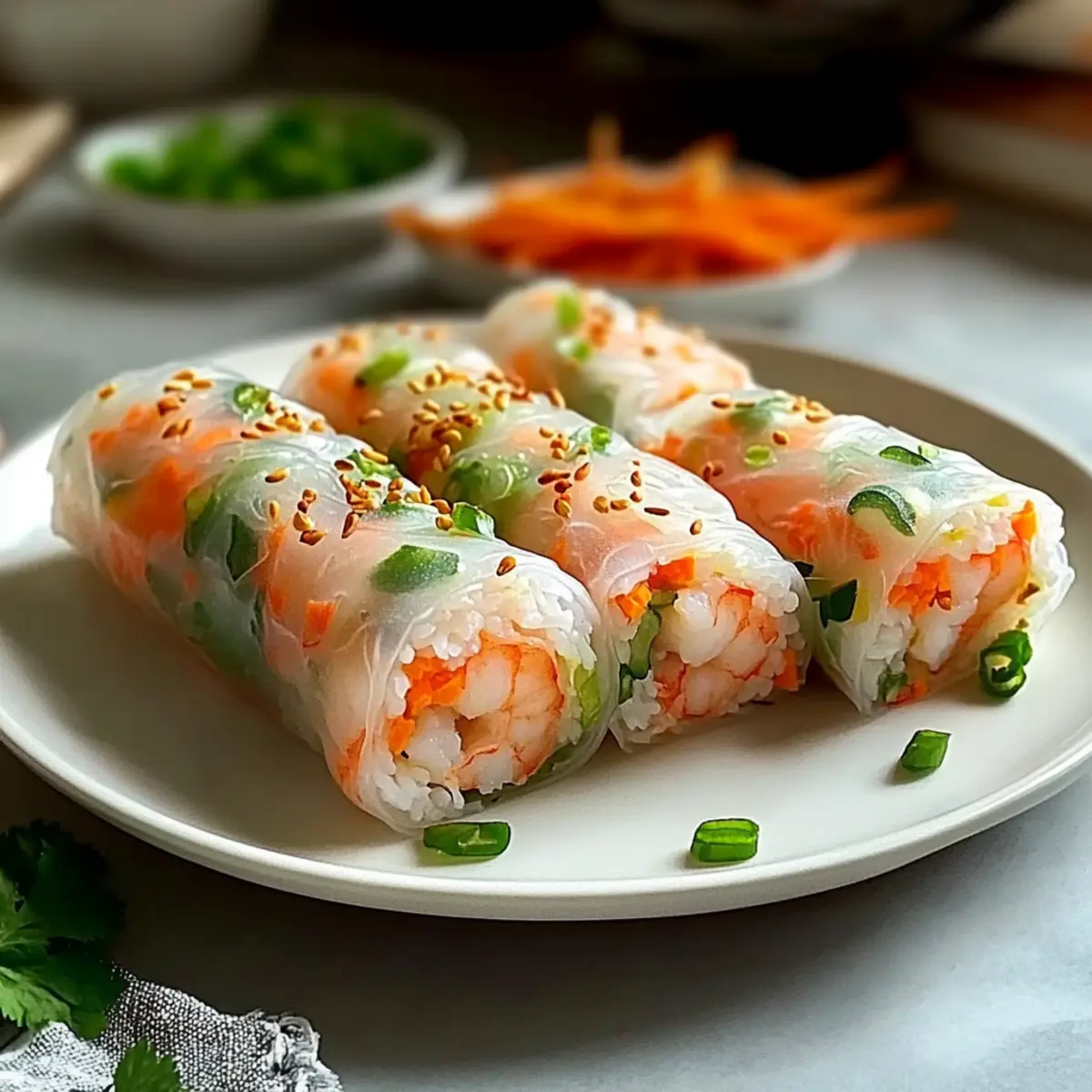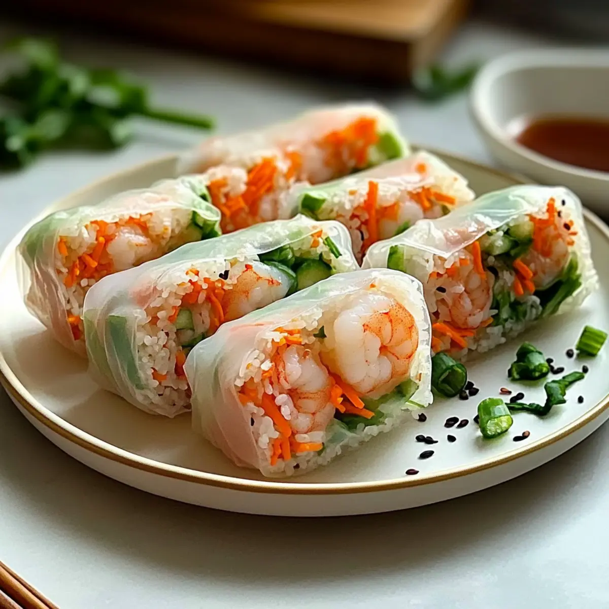 Freshness, The combination of crunchy vegetables and tender shrimp wrapped in delicate rice paper creates a balanced bite that’s hard to resist. Customizable, Whether you prefer classic shrimp or want to switch to tofu for a vegetarian option, this recipe adapts to your cravings. Healthy Goodness, At only 200 calories per serving, they make a guilt-free snack or meal. Crowd-Pleaser, Perfect for gatherings, these rolls are sure to impress your guests and become a favorite for future events. Plus, pair them with your choice of dipping sauces like sweet chili or peanut sauce for an extra flavor boost! Try these delightful Brown Butter Treats for dessert to round out your meal!