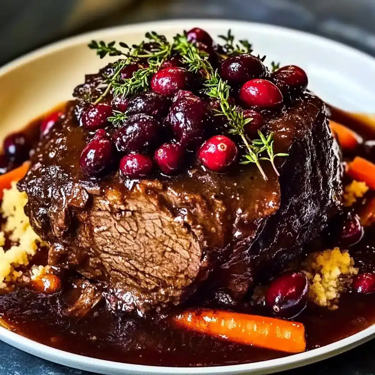 Mouthwatering Slow-Braised Beef Roast with Cranberry Balsamic Glaze