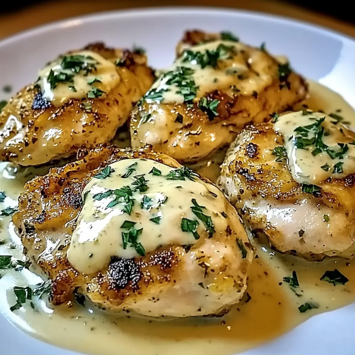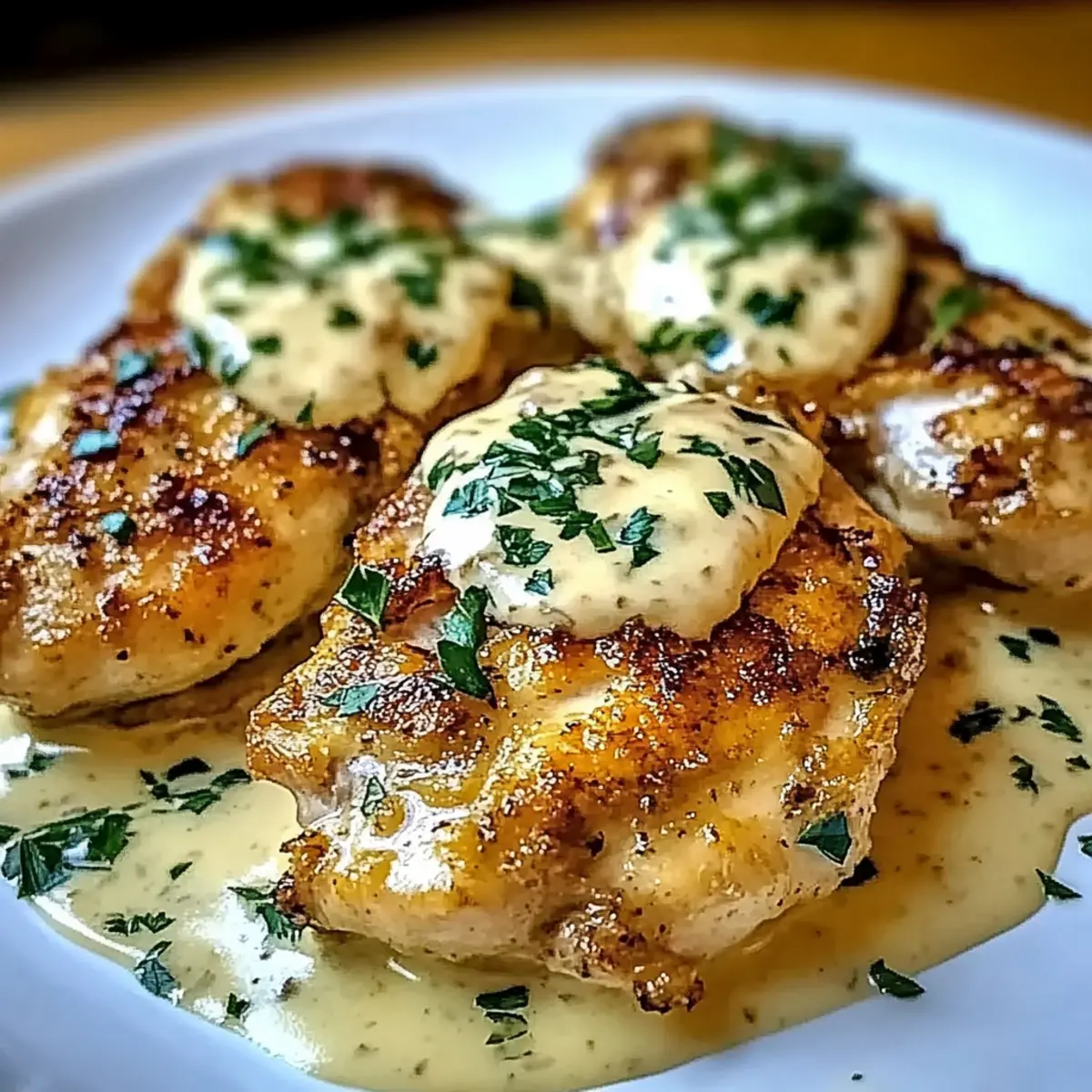 - Let the chicken rest for about 5 minutes, then garnish with fresh parsley before serving.