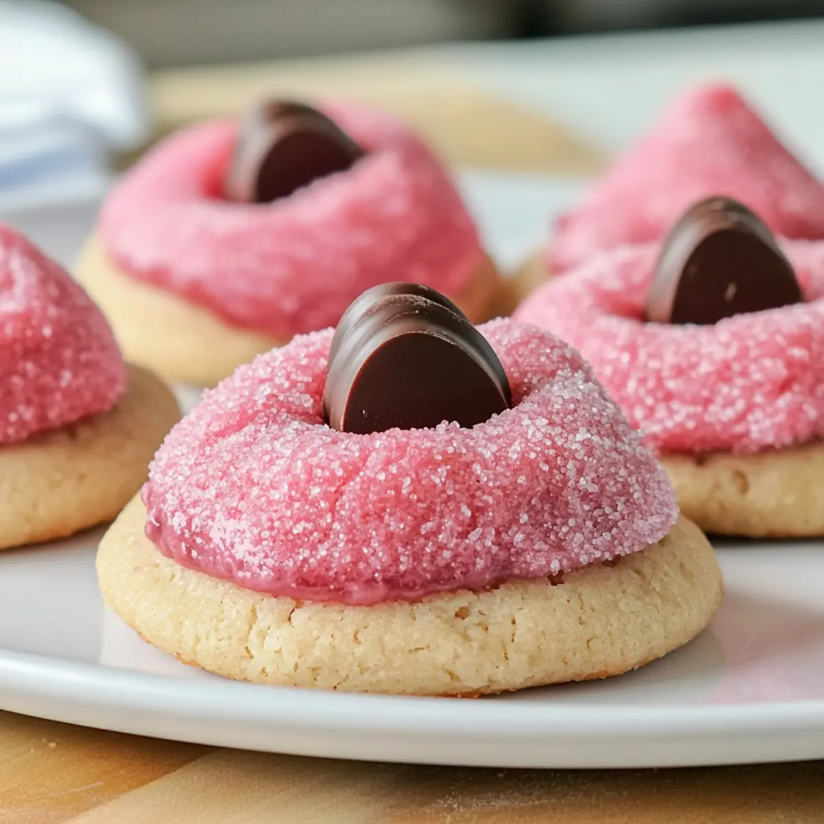 Press Gently: When adding the chocolate kisses, press gently to create an inviting indentation. Too much pressure can cause the cookies to crack excessively.