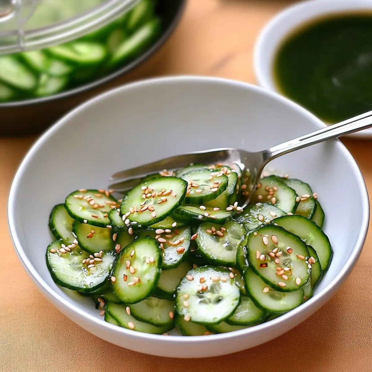 Just before serving, sprinkle a tablespoon of sesame seeds over the salad for an added nutty crunch. You can also drizzle a few drops of toasted sesame oil for extra flavor. Serve the Sunomono salad chilled to enjoy its refreshing qualities, making it a perfect accompaniment to any Asian-inspired meal.