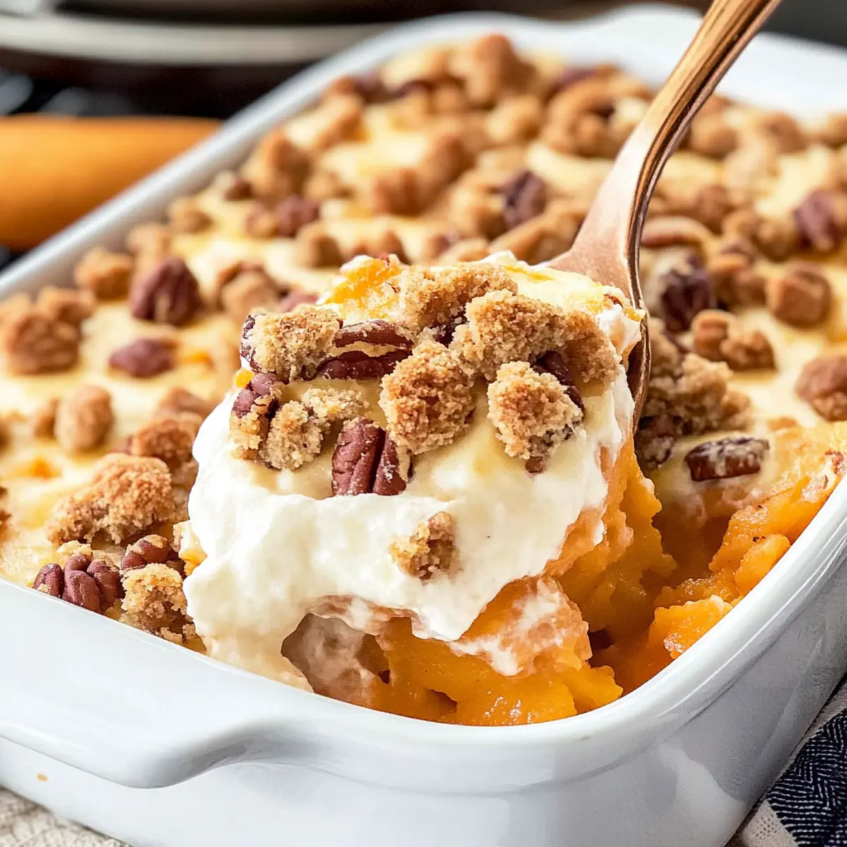 Absolutely! Preparing ahead can save you time when the holiday rush hits. You can mix the sweet potato base a day in advance and store it in the fridge. Just don’t add the pecan topping until you’re ready to bake it to keep that crunch! When you’re ready, sprinkle the topping over and bake it according to the recipe instructions.