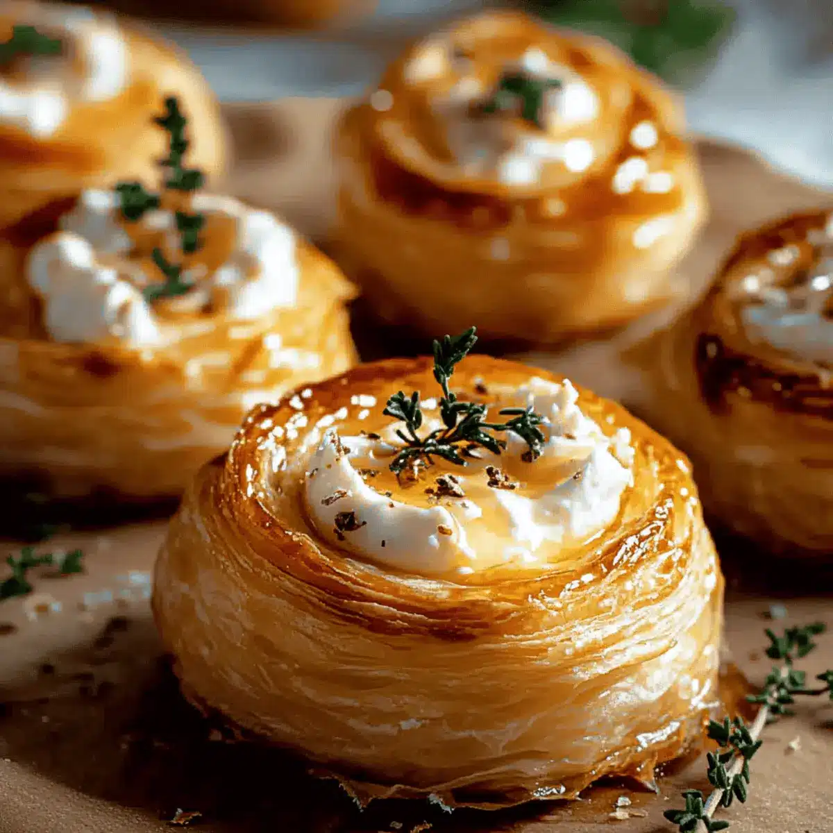 Next, take each pastry circle and gently create a well in the center using your thumb or the back of a small spoon. This well will hold the creamy goat cheese and honey, providing a perfect balance of flavors. Make sure not to press too hard; you want to maintain the outer edge’s structural integrity for a beautiful presentation.