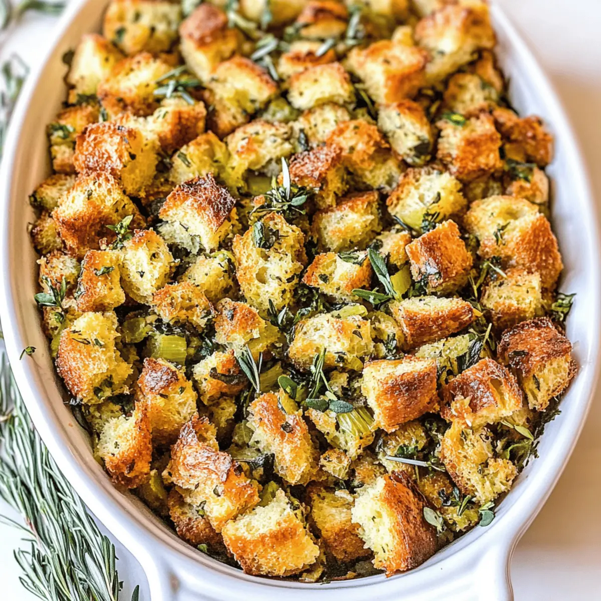 Crowd-Pleasing Appeal: Whether it’s Thanksgiving or a family gathering, everyone will want seconds of this delicious stuffing.