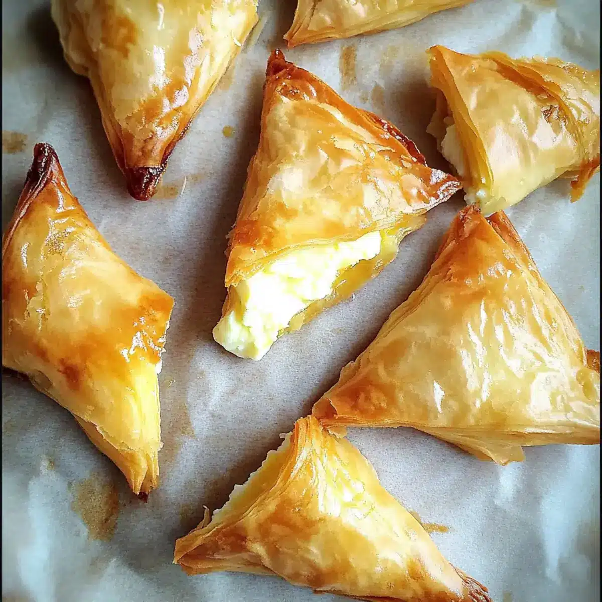 A good visual cue is color! Tiropitas should be a lovely golden brown on the outside, and you can gently tap on one to check its crispiness. If it feels light and crisp to the touch, they are likely done. Always keep an eye on them during the last few minutes of baking to prevent over-browning!