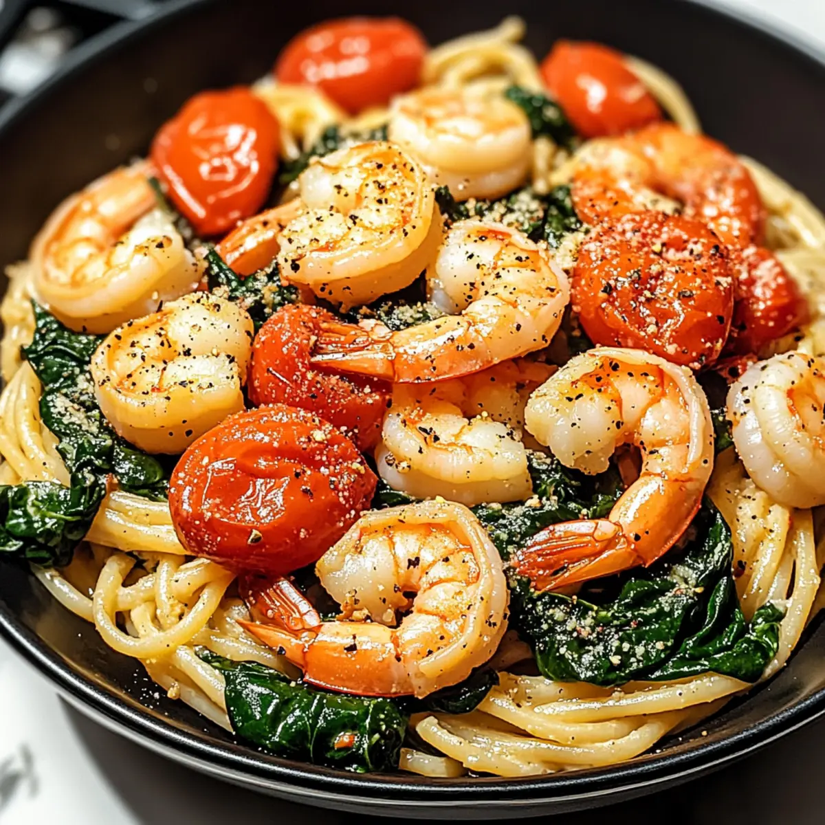 Enjoy crafting this delicious Tomato Spinach Shrimp Pasta that’s as nourishing as it is delightful!